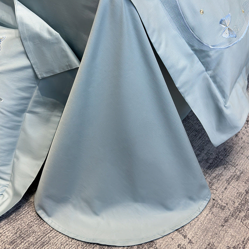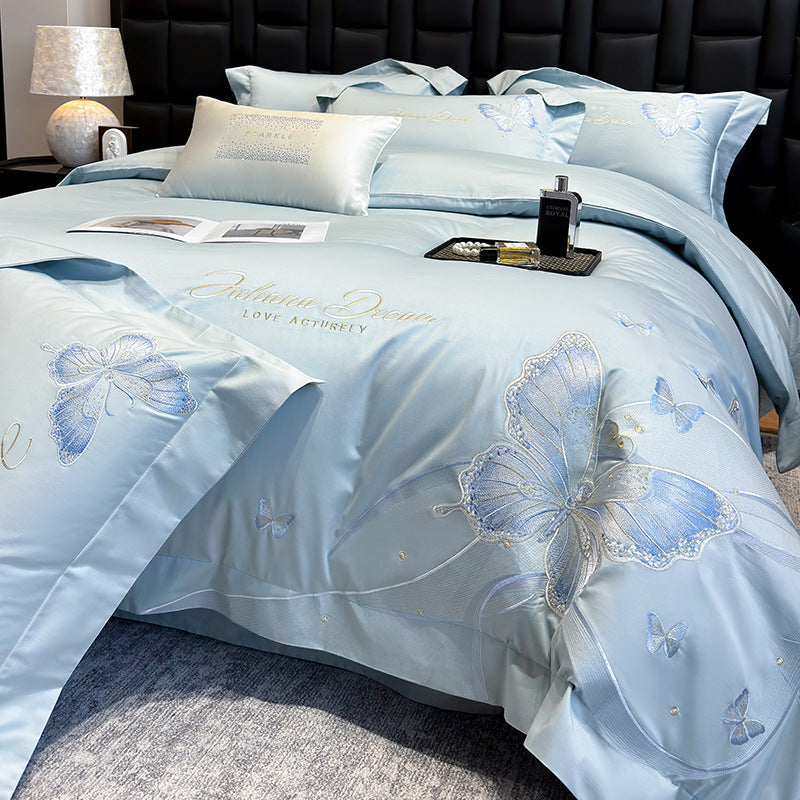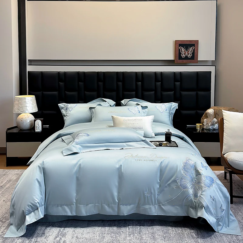 This beautiful bedding brings an effortless touch of understated luxury to your bedroom's décor thanks to the luxurious, carefully embroidered flowers on a lovely sky blue base that will bring your dreams to the next level.