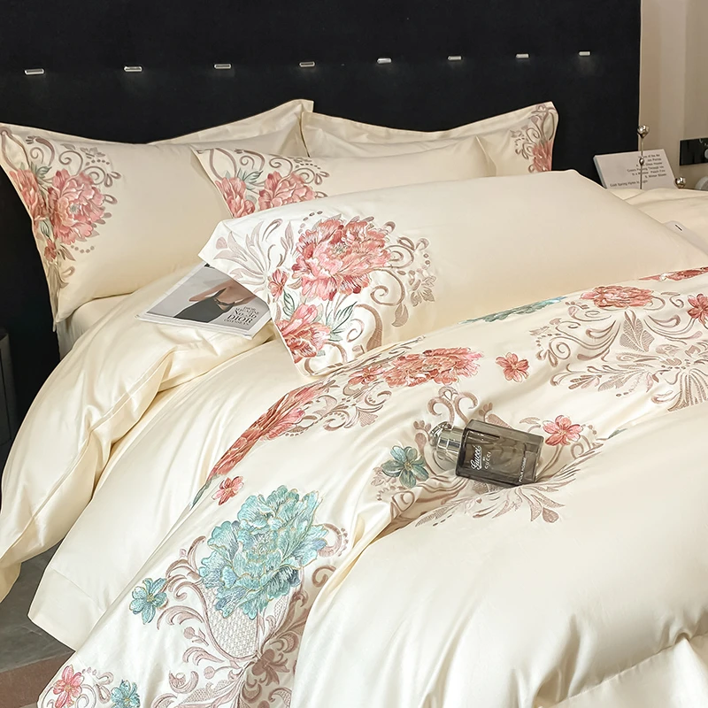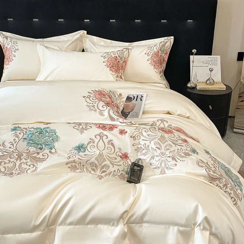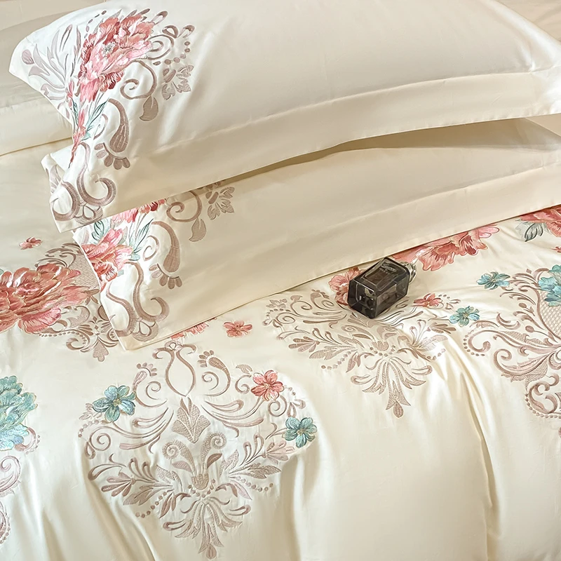 This elegant set features delicately embroidered flowers on a soft cream base. Made from 100% Cotton with a 600TC weave for a smooth, comfortable feel in every season.