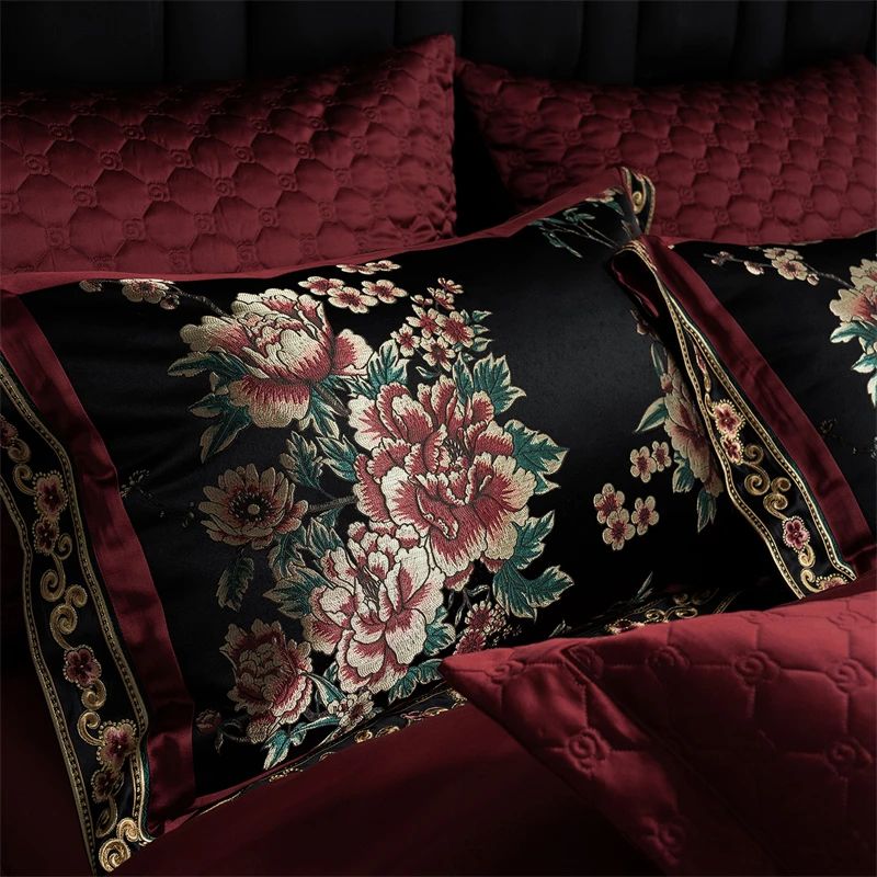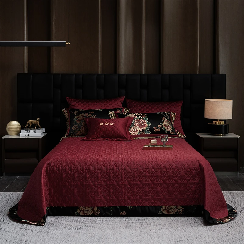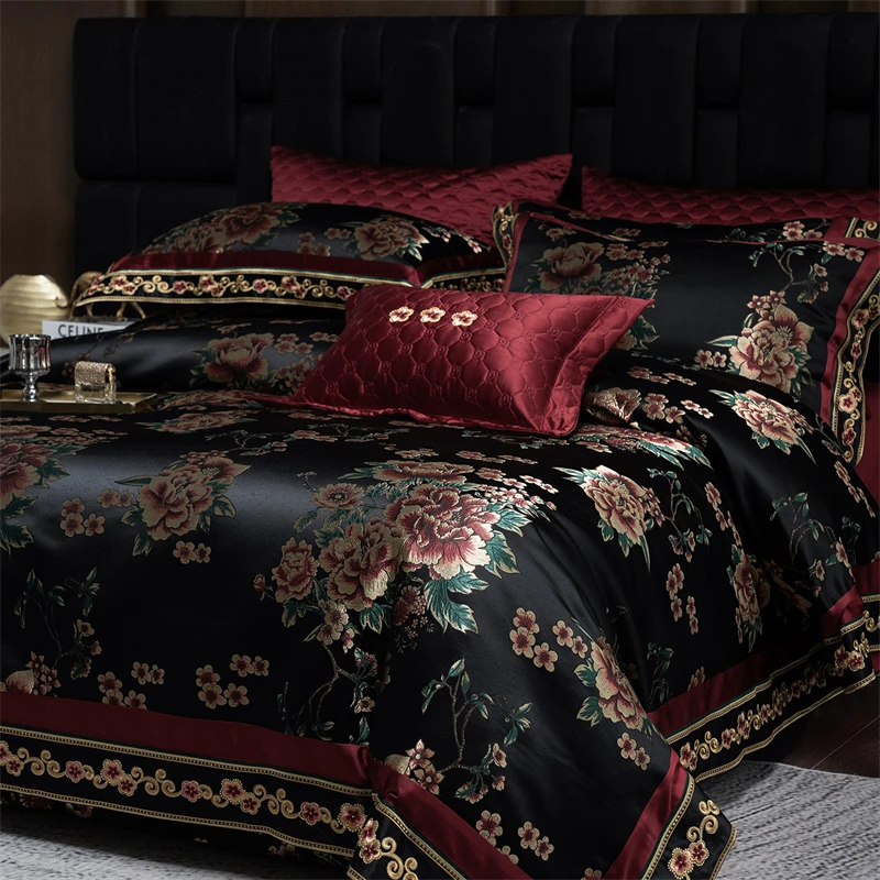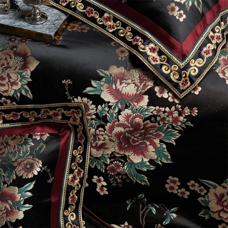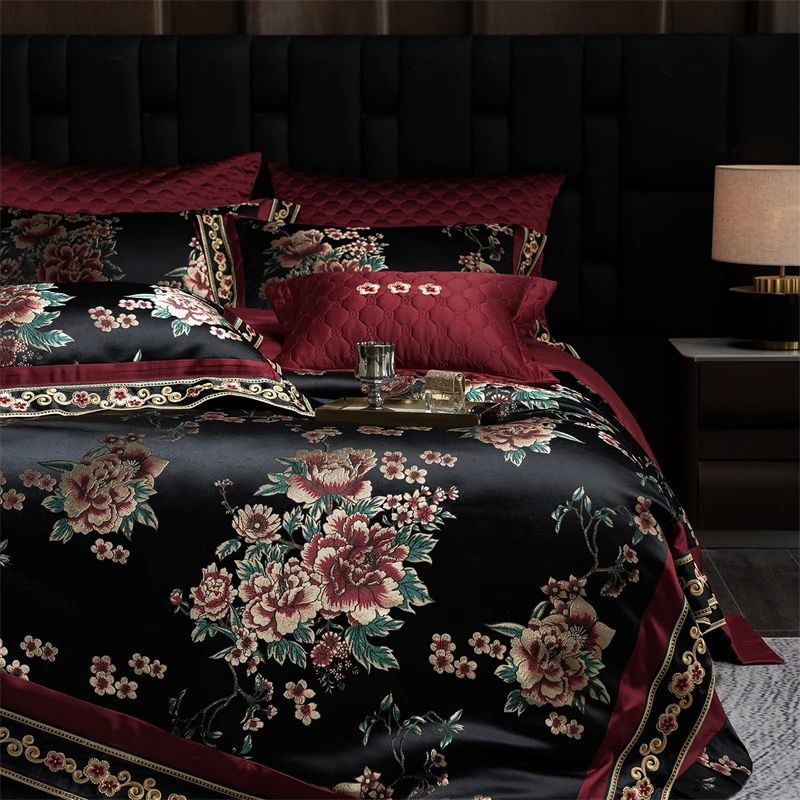 This set blends modern embroidery with a clean black finish. The outer layer is premium Jacquard Cotton & Satin, while the inner side is ultra-soft 100% Cotton for comfortable sleep.