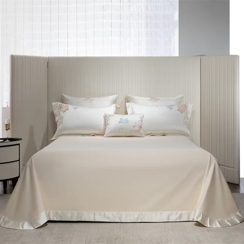 the bottom and the bedsheet is made with 100% Egyptian Cotton, with a 1000-Thread-Count, super-soft and perfect for all seasons.
